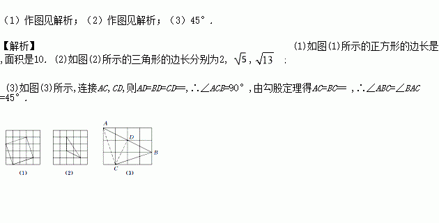 (3)如图(3)所示,点A,B,C是小正方形的顶点,求∠ABC的度数.