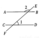如图,AB∥CD,若∠2是∠1的3倍,则∠1的度数是( ).