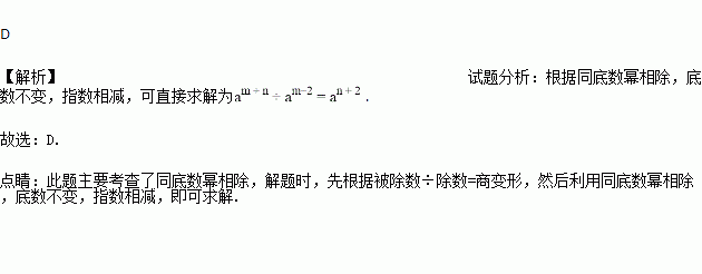 科目:初中数学 来源:苏科版七年级数学 下册 第8章 幂的运算 同步练习 题型:单选题