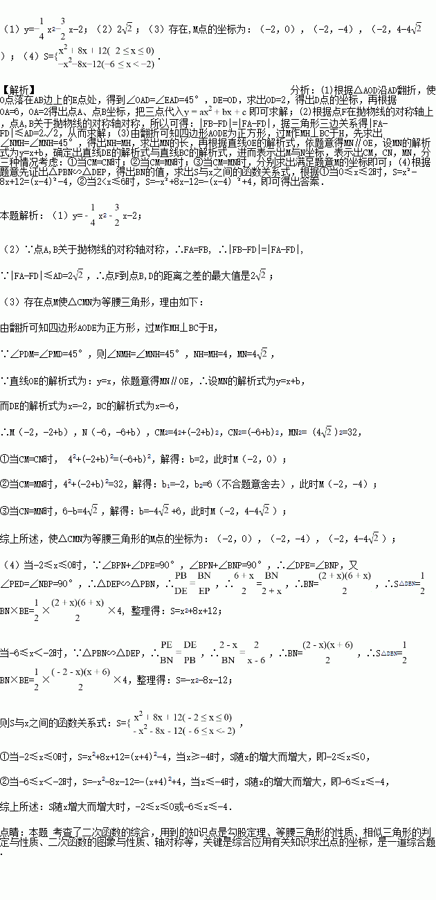 (4)如图2,当点P在线段AB上移动时,设P点坐标为(x,-2),记△DBN的面积为S,请直接写出S与x之间的函数关系式,并求出S随x增大而增大时所对应的自变量x的取值范围.
