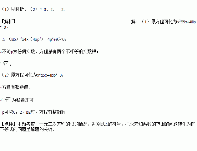 (2)p为何值时,方程有整数解.(直接写出三个,不需说明理由)