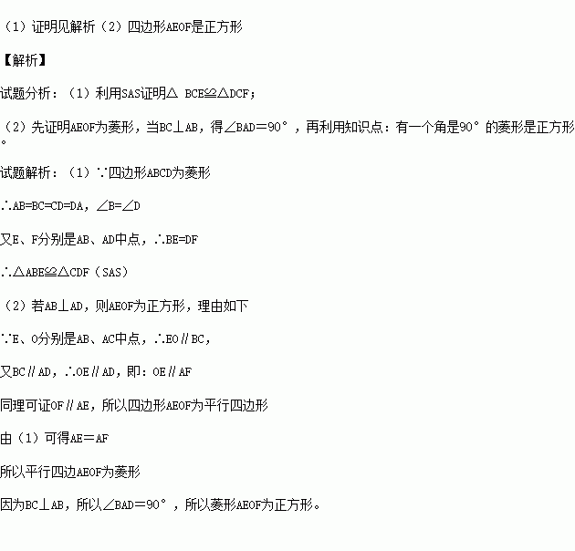 (2)当AB与BC满足什么条件时,四边形AEOF正方形?请说明理由.