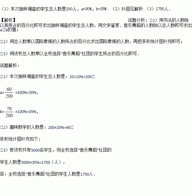 (3)若该校共有5000名学生,试估计全校选择“音乐舞蹈”社团的学生人数.