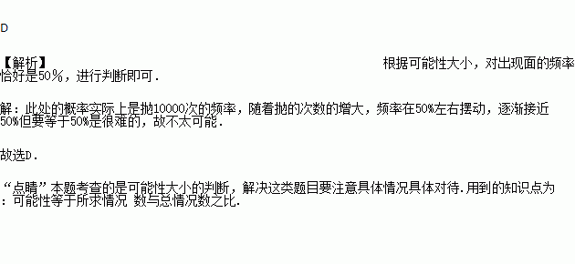 在抛硬币的游戏中,若抛了 10000 次,则出现正面的频率恰好是50%,这是 ( )