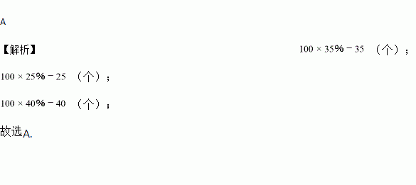 在一盒子里有红、黄、蓝球共100个,小明总结多次摸球的规律:红球、黄球、蓝球的概率依次是 35%,25%,40%,则估计红、黄、蓝球的个数分别是 ( )