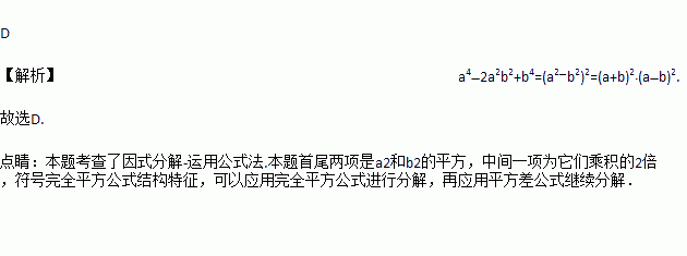 A. a2(a2?2b2)+b4 B. (a2?b2)2 C. (a?b)4 D. (a+b)2?(a?b)2