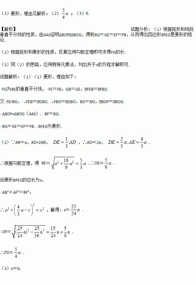 AD (n为大于2的整数),连接BE,作BE的垂直平分线分别交AD,BC于点F,G,FG与BE的交点为O,连接BF和EG.