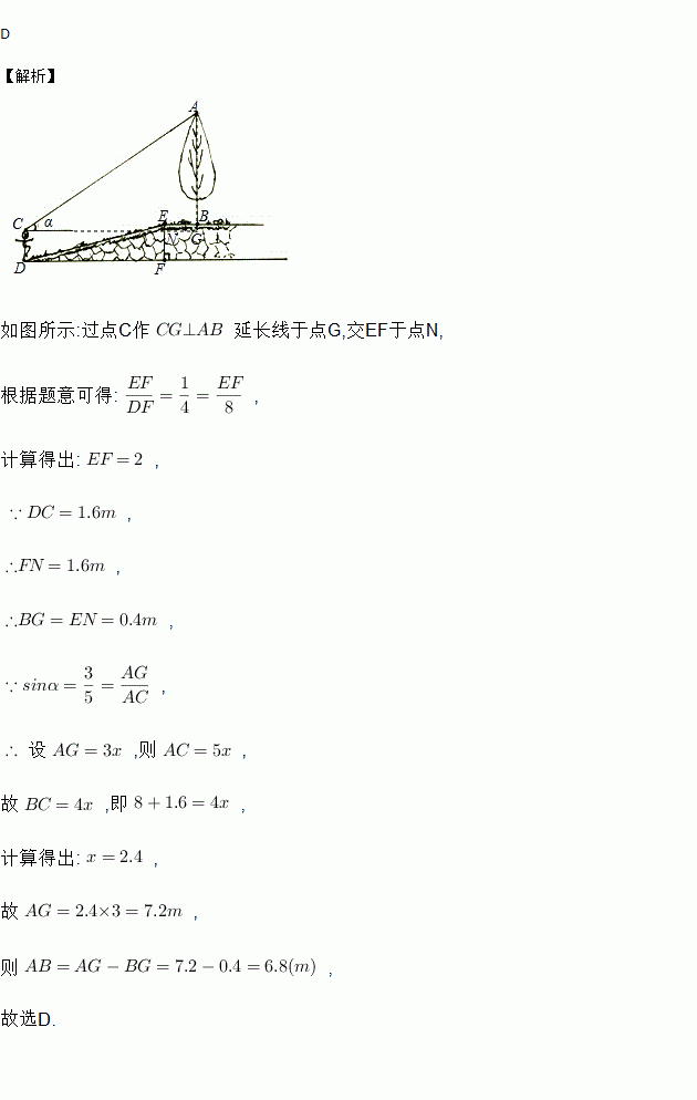 的水平距离DF为8m处的D点,测得大树顶端A的仰角为