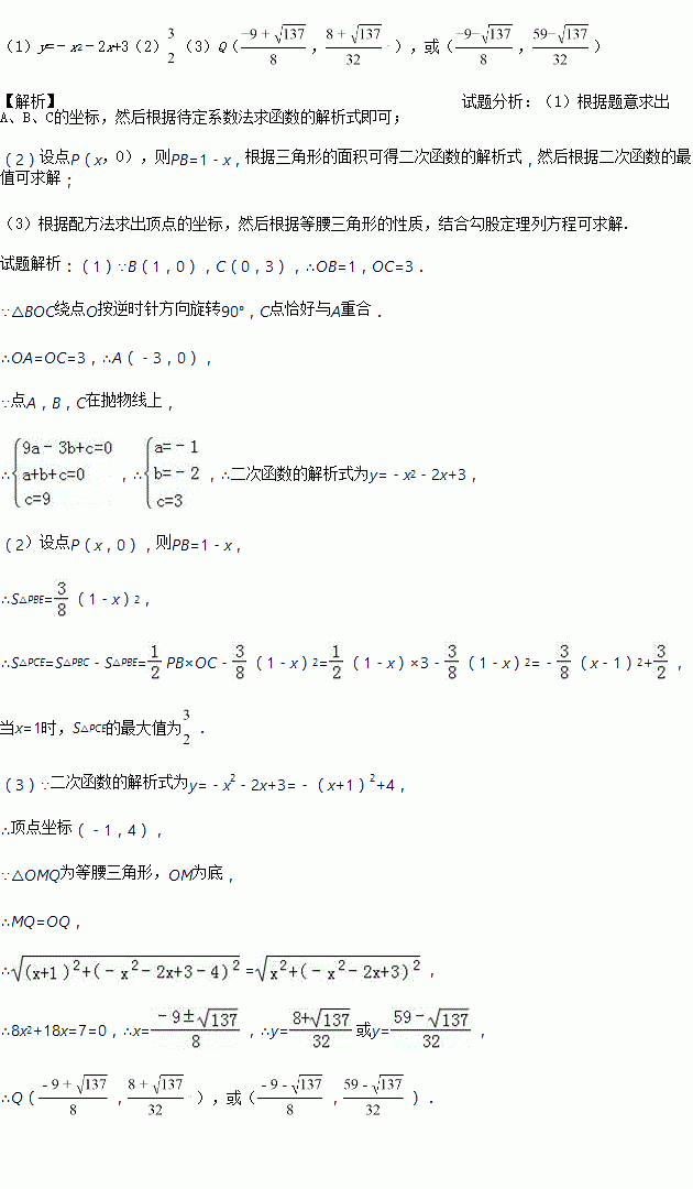 (3)设抛物线的顶点为M,Q为它的图象上的任一动点,若△OMQ为以OM为底的等腰三角形,求Q点的坐标.