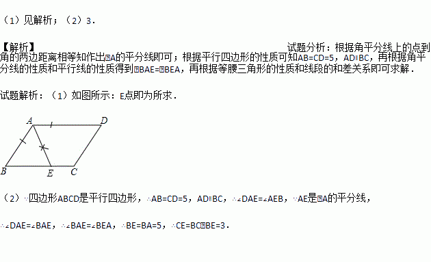 (1)利用尺规作图,在AD边上确定点E,使点E到边AB,BC的距离相等(不写作法,保留作图痕迹);