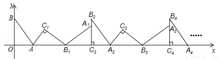 如图,在平面直角坐标系中,将△ABO绕点A顺时针旋转到△AB1C1的位置,点B、O分别落在点B1、C1处,点B1在x轴上,再将△AB1C1绕点B1顺时针旋转到△A1B1C2的位置,点C2在x轴上,将△A1B1C2绕点C2顺时针旋转到△A2B2C2的位置,点A2在x轴上,依次进行下去….若点A(