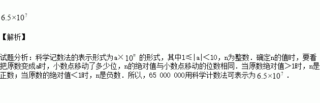 近年来,国家重视精准扶贫,收效显著,据统计约65 000 000人脱贫。65 000 000用科学计数法可表示为______________________。