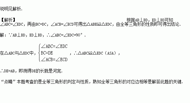 ④测得DE的长就是河宽.