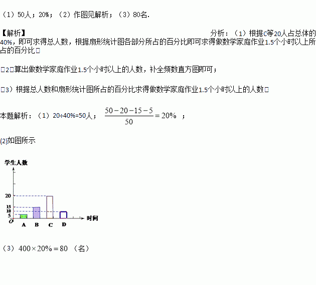 £¨3£©ÒÑÖª¸ÃУ¾ÅÄê¼¶¹²400ÃûѧÉú£¬¾Ý´ËÍÆË㣬¸ÃУ¾ÅÄ꼶ѧÉúÖУ¬¡°×öÊýѧ¼ÒÍ¥×÷Òµ1.5¸öСʱÒÔÉÏ¡±µÄѧÉúÈËÊý.