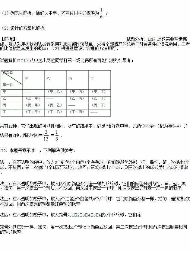 甲、乙、丙、丁四名同学进行一次乒乓球单打比赛,要从中选两位同学打第一场比赛.