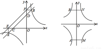 如图,已知直线y=mx+n与反比例函数交于A、B两点,点A在点B的左边,与x轴、y轴分别交于点C、点D,AE⊥x轴于E,BF⊥y轴于F