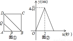 如图①,在边长为4的正方形ABCD中,点P以每秒2cm的速度从点A出发,沿AB→BC的路径运动,到点C停止.过点P作PQ∥BD,PQ与边AD(或边CD)交于点Q,PQ的长度y(cm)与点P的运动时间x(秒)的函数图象如图②所示.当点P运动2.5秒时,PQ的长是( )