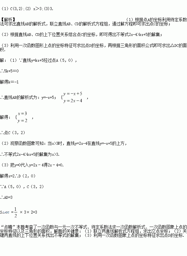 已知直线y=kx+5交x轴于A,交y轴于B且A坐标为(5,0),直线y=2x﹣4与x轴于D,与直线AB相交于点C.