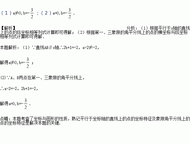 已知点A(a-2,-2),B(-2,2b+1),根据以下要求确定a、b的值.