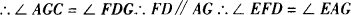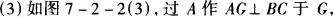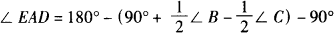 在处理三角形中的角的问题时,有时需要从整体出发进行考虑,有时也可以通过适当添加辅助线使未知问题转化为已经解决的问题.本题中第(1)问要找出∠EAD与∠B、∠C的数量关系,可考虑利用三角形内角和等于180°及三角形的外角性质.为此,把∠EAD、∠B、∠C先放到具体的三角形中,∠EAD可看做△ADE的一个内角,也可看做∠EAC与∠DAC的差或∠BAD与∠BAE的差. 本题第(2)、(3)小题,可先作出BC边上的高,得到∠EAG,再确定∠EFD(如图(2)、图(3)). |