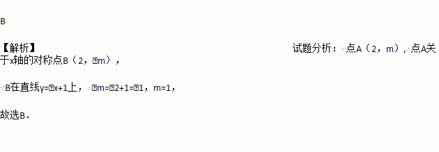如图,在平面直角坐标系中,点A(2,m)在第一象限,若点A关于x轴的对称点B在直线y=﹣x+1上,则m的值为( )