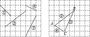 解答 解:(1)如图,线段②③④首尾连接构成一个三角形,△ABC为所作;![]()