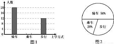 学习了统计知识后,班主任王老师叫班长就本班同学的上学方式进行了一次调查统计,图1和图2是他通过收集数据后,绘制的两幅不完整的统计图,请你根据图中提供的信息,解答以下问题:![]()