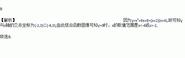 已知函数y=x2+6x+8,使函数值y>0的x的取值范围是( )