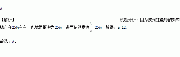 在一个抽屉里放有a个除颜色不同其它完全相同的球,设a个球中红球只有3个,每次将球搅拌均匀后任意摸出一个,大量重复摸球实验后发现,摸到红球的频率稳定在25%左右.则抽屉里原有球( )个.