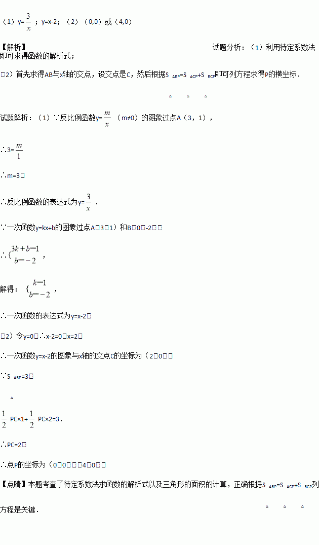 (2)如果点P是x轴上一点,且△ABP的面积是3,求点P的坐标.