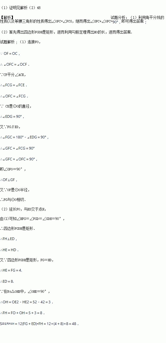 (2)若FG=4,⊙O的半径为5,求四边形FGDE的面积.