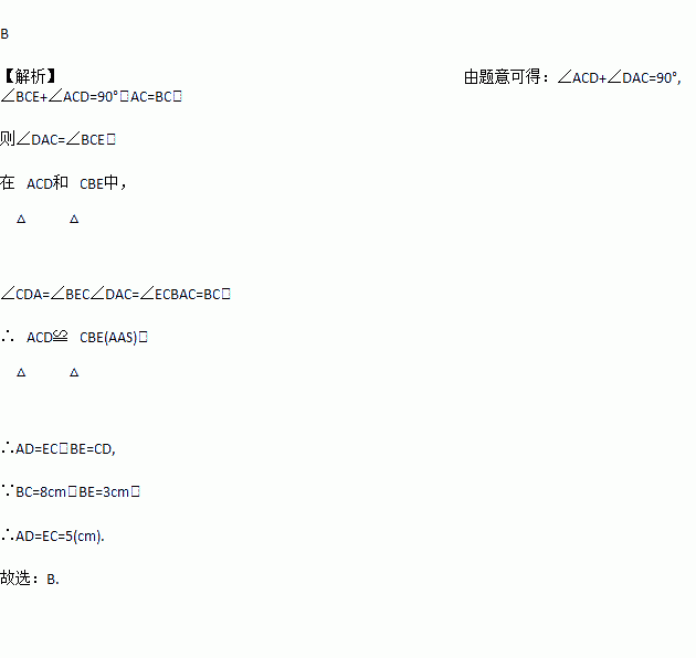 如图,桌面上竖直放置一等腰直角三角板ABC,若测得斜边AB在桌面上的投影DE为8cm,且点B距离桌面的高度为3cm,则点A距离桌面的高度为( )