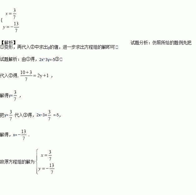 这种方法被称为“整体代入法”,请用这样的方法解下列方程组![]()