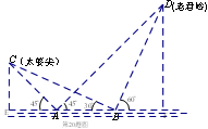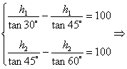 在一次暑期旅游中,小亮在仙岛湖的游船上(A处),测得湖西岸的山峰太婆尖(C处)和湖东岸的山峰老君岭(D处)的。仰角都是4 50。游船向东航行100米后(B处),测得太婆尖、老君岭的仰角分别为300、600.试问太婆尖、老君岭的高度为多少米?(