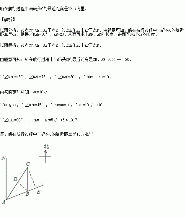 恰好在船的正北方向,在船不改变航向的情况下,求出船在航行过程中与码头