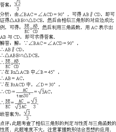 将一副三角尺如图所示叠放在一起,则的值是________.