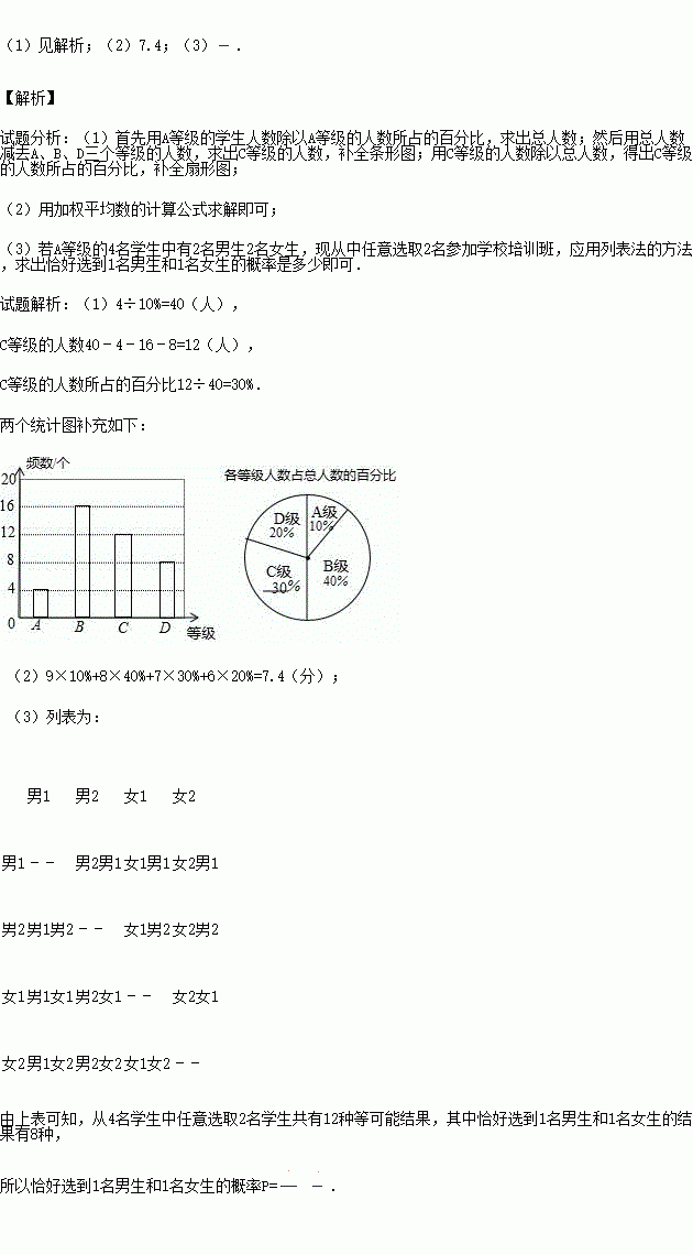 四个等级,对应的成绩分别是