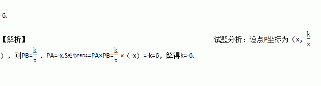 (x<0)图像的一点,PA垂直于y轴,垂足为点A,PB垂直于x轴,垂足为点B.若矩形PBOA的面积为6,则k的值为__________.