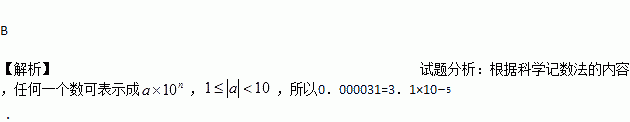 用科学记数法表示0.000031,结果是( )