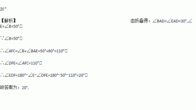 如图,在△ABC中,点D是BC边上的一点,∠B=50°,∠BAD=30°,将△ABD沿AD折叠得到△AED,AE与BC交于点F.则∠EDF的度数是__________.