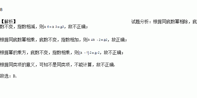 科目:初中数学 来源:苏科版七年级数学 下册 第8章 幂的运算 同步练习 题型:单选题