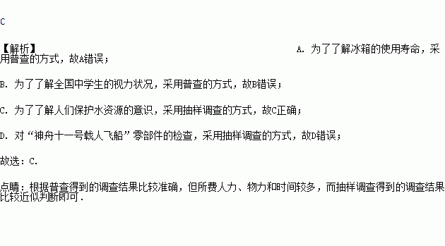 A. 为了了解冰箱的使用寿命,采用普查的方式