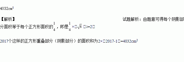 cm的正方形按如图所示摆放,点A1、A2、…、An分别是正方形的中心,则2017个这样的正方形重叠部分的面积和为_________.