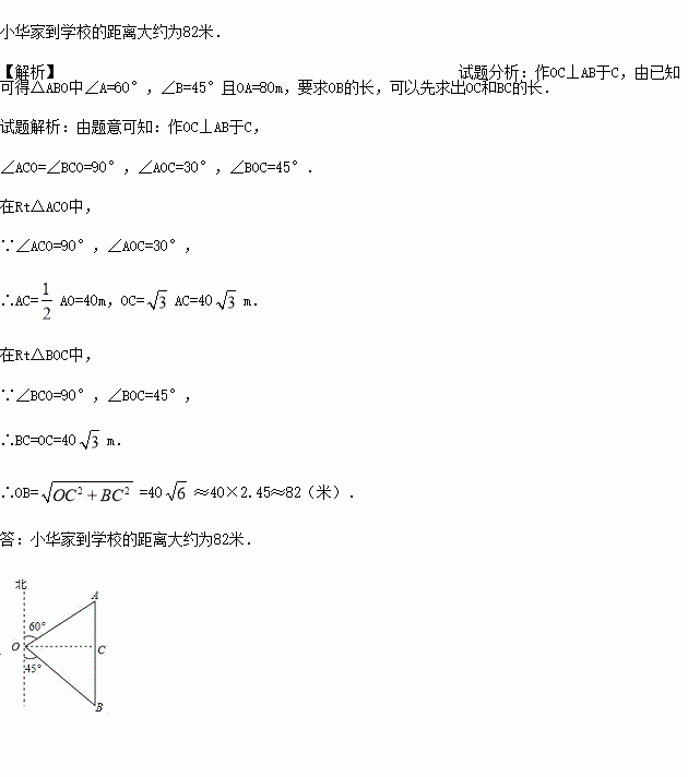 处,小华家在学校