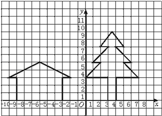 解:这个图形像一栋“房子”旁边还有一棵“大树”,其中,第(1)组点连成一栋“房子”,第(2)组点连成一棵“大树”。