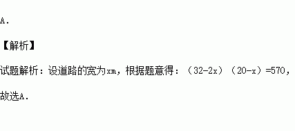 如图,某小区计划在一块长为32m,宽为20m的矩形空地上修建三条同样宽的道路,剩余的空地上种植草坪,使草坪的面积为570m2.若设道路的宽为xm,则下面所列方程正确的是( )