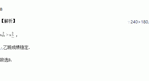 A. 甲班 B. 乙班 C. 两班成绩一样稳定 D. 无法确定