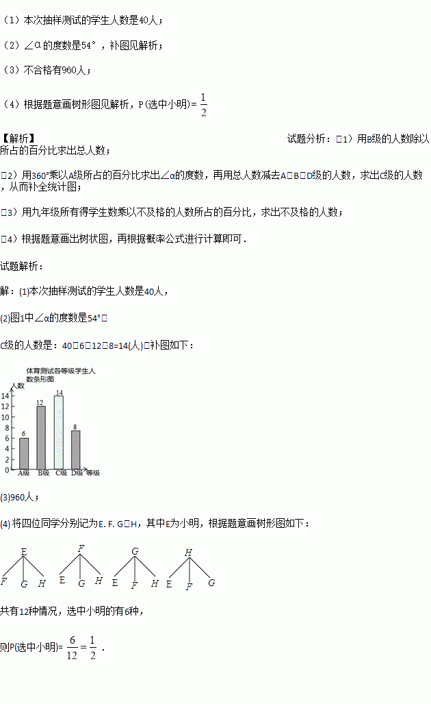 (4)测试老师想从4位同学(分别记为E、F、G、H,其中H为小明)中随机选择两位同学了解平时训练情况,请用列表或画树形图的方法求出选中小明的概率.