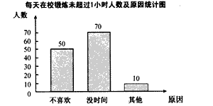 国家教育部规定“中小学生每天在校体育活动时间不低于1小时”.西宁市某中学为了了解学生体育活动情况,随机抽查了520名毕业班学生,调查内容是:“每天锻炼是否超过1小时及未超过1小时的原因“.以下是根据所得的数据制成的统计图的一部分.
