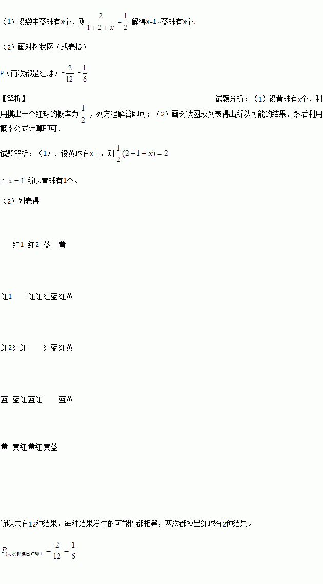 (1)求袋中黄球的个数;